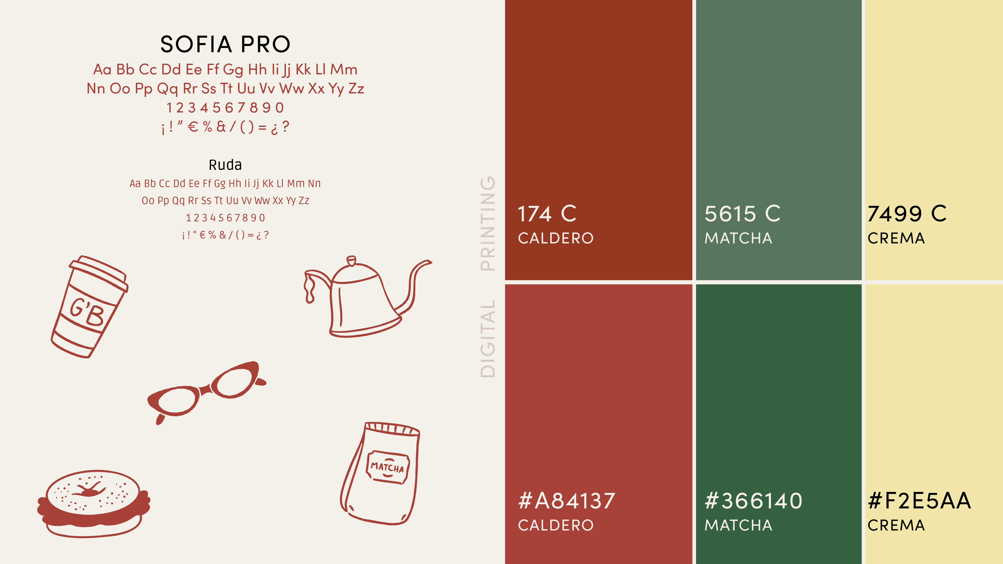 We kicked off with a naming workshop, landing on Gaby’s Bagels, simple and personal. Next, we defined a brand strategy around three pillars: approachability, craft and delight. That guided tone of voice (“witty, playful and full of flavour”) and messaging . Our design team then sculpted a vibrant identity: a logo family, a distinctive colour palette of warm red, deep green and soft cream, plus a duo of typefaces (Sofia Pro and Ruda) that balance friendliness with clarity. Finally, we wrapped it all up in packaging and collateral (from branded cups, bags and napkins to in-shop signage) ensuring every touchpoint feels unmistakably Gaby’s.